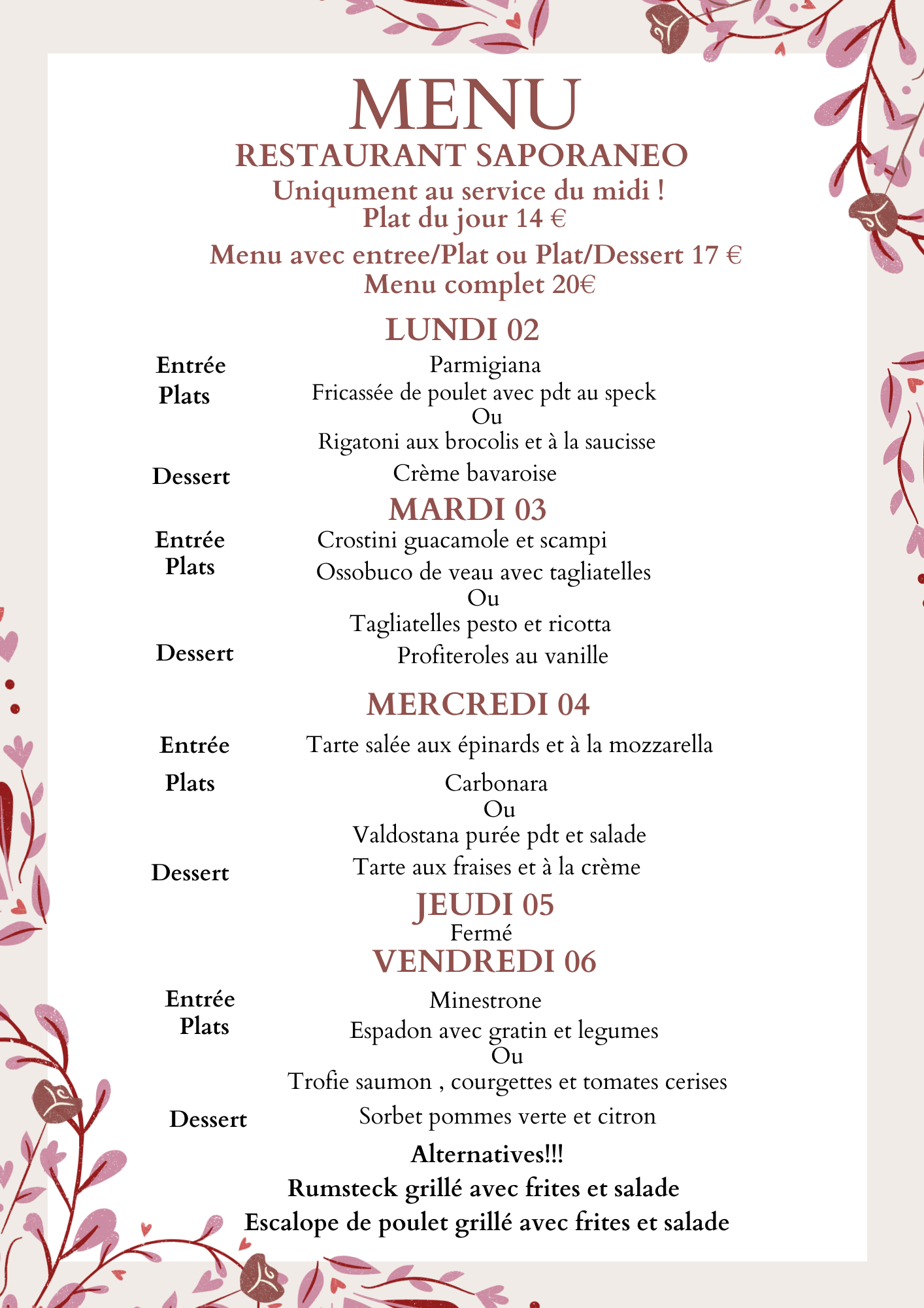 MENU DU JOUR